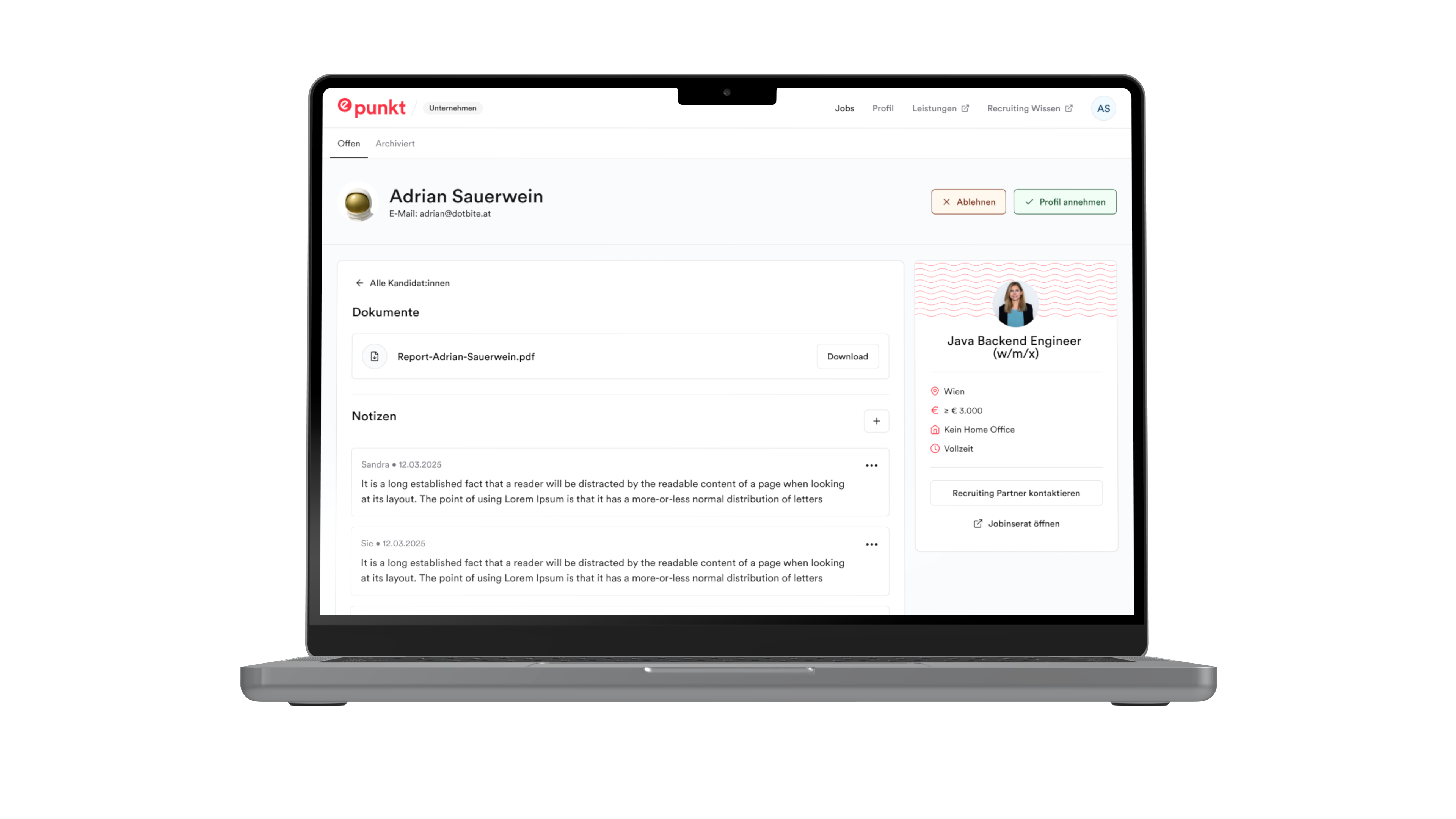 Um das möglich zu machen, haben wir Dotbites Full-Service Produktentwicklung aus Strategie, UX/UI, Full-Stack Development, Infrastruktur und Go-live Support mit epunkts operativer Recruiting-Expertise vereint. Gemeinsam haben wir die wichtigsten Use Cases priorisiert, komplexe Prozesse in eine klare User Experience übersetzt und ein technisches Fundament geschaffen, das nicht nur nahtlos mit Salesforce integriert ist, sondern mit epunkts Wachstum mit skaliert. Das Ziel war nicht einfach ein Portal zu ersetzen. Es war eine Plattform zu bauen, die sich an der Oberfläche mühelos anfühlt und darunter enorme Stärke hat.