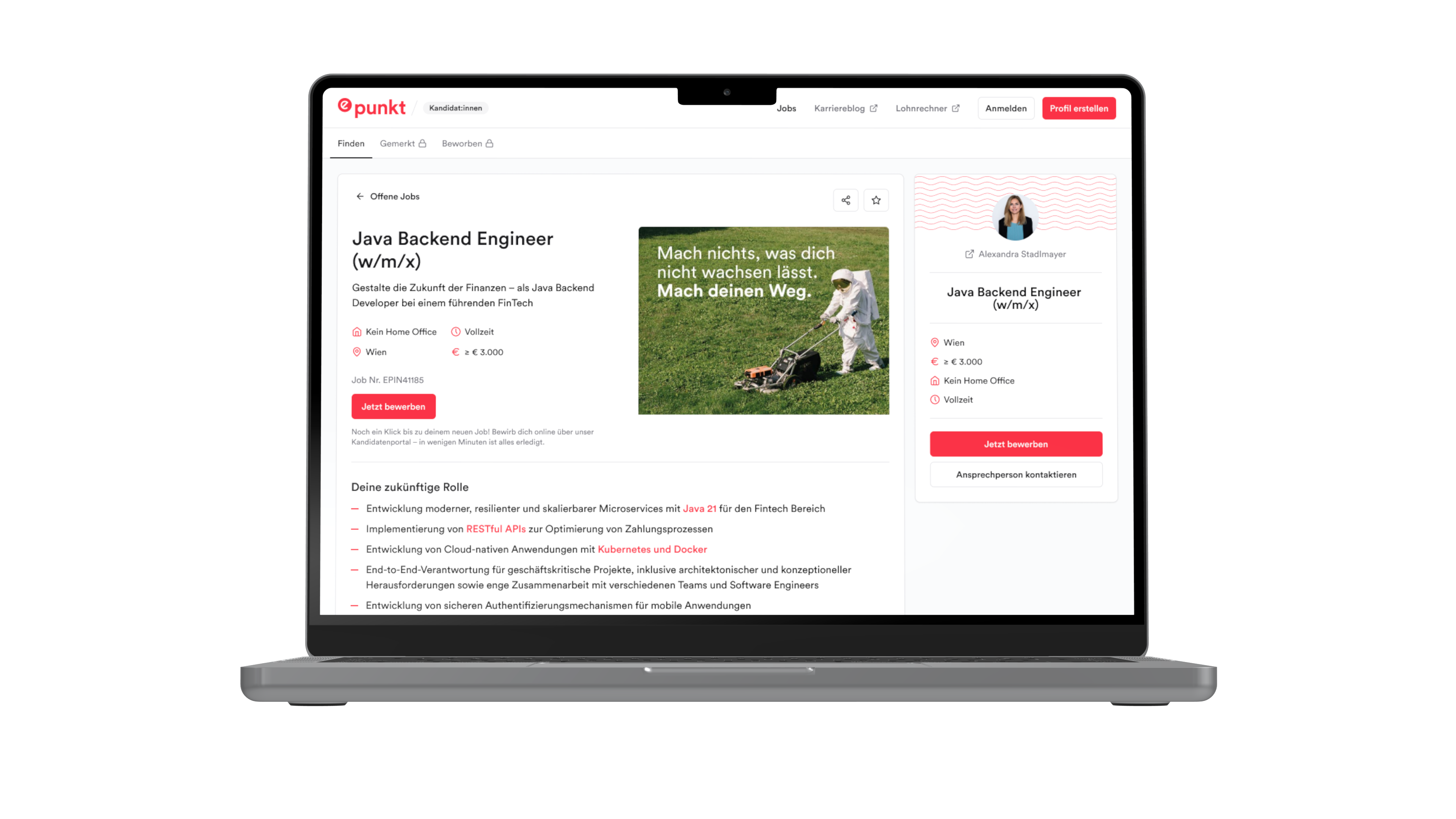 Die Herausforderung war dabei nicht nur technischer Natur. Es ging darum, Vertrauen durch ein kandidat:innenzentriertes Erlebnis aufzubauen, während im Hintergrund ein komplexes Recruiting-Ökosystem verbunden wird. Damit waren die Ziele klar: ein modernes Job- und Kundenportal zu schaffen, das auf Geschwindigkeit und Usability ausgelegt ist, Salesforce als Single Source of Truth zu etablieren und eine stabile Basis zu liefern, die mit epunkts Wachstum skalieren und sich flexibel weiterentwickeln kann.
